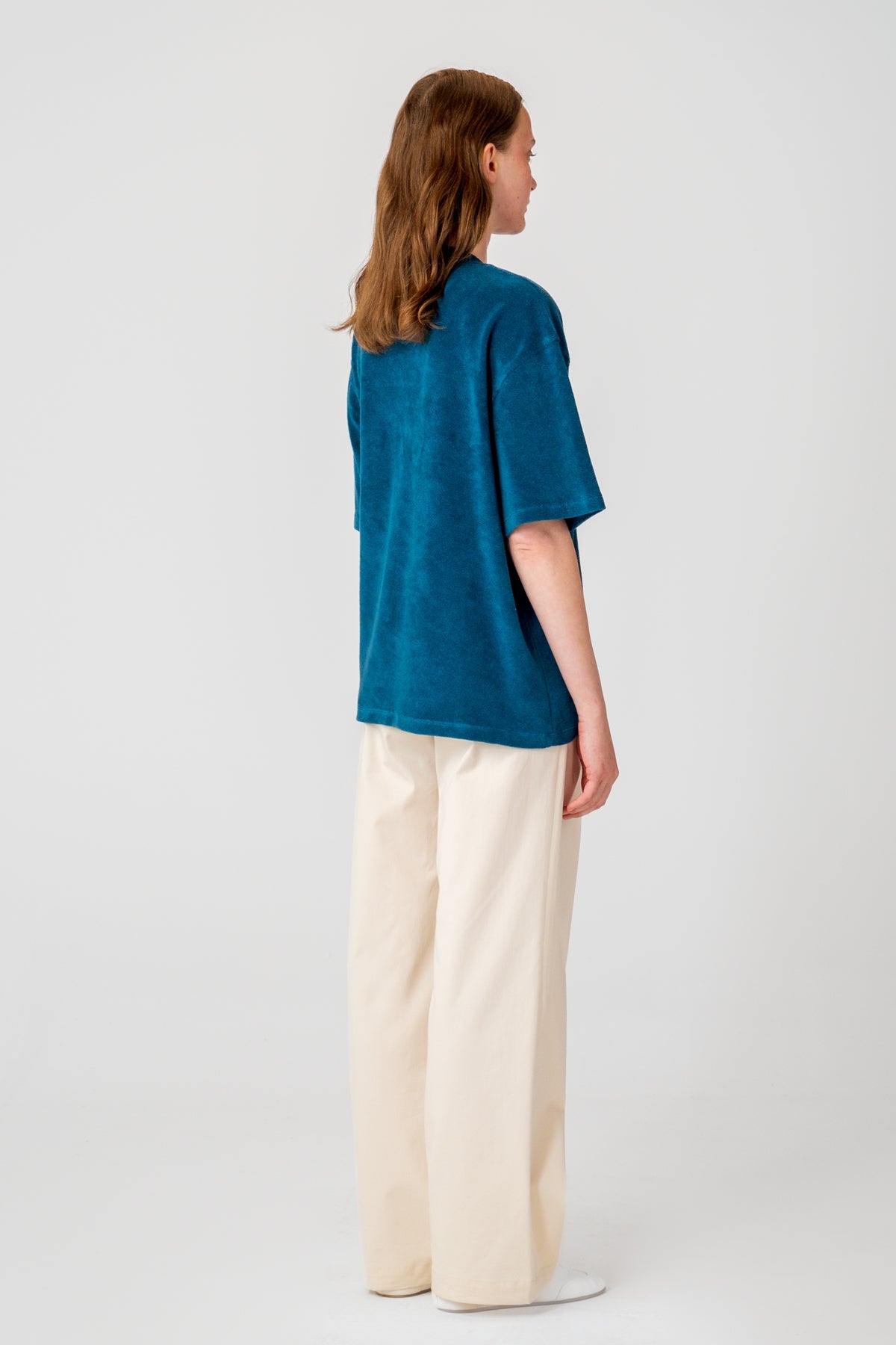 Terry kumaştan, cepli, nakışlı, oversize-fit, unisex t-shirt.